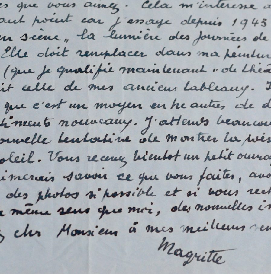 Superbe lettre de Magritte expliquant le rôle de la lumière dans sa peinture