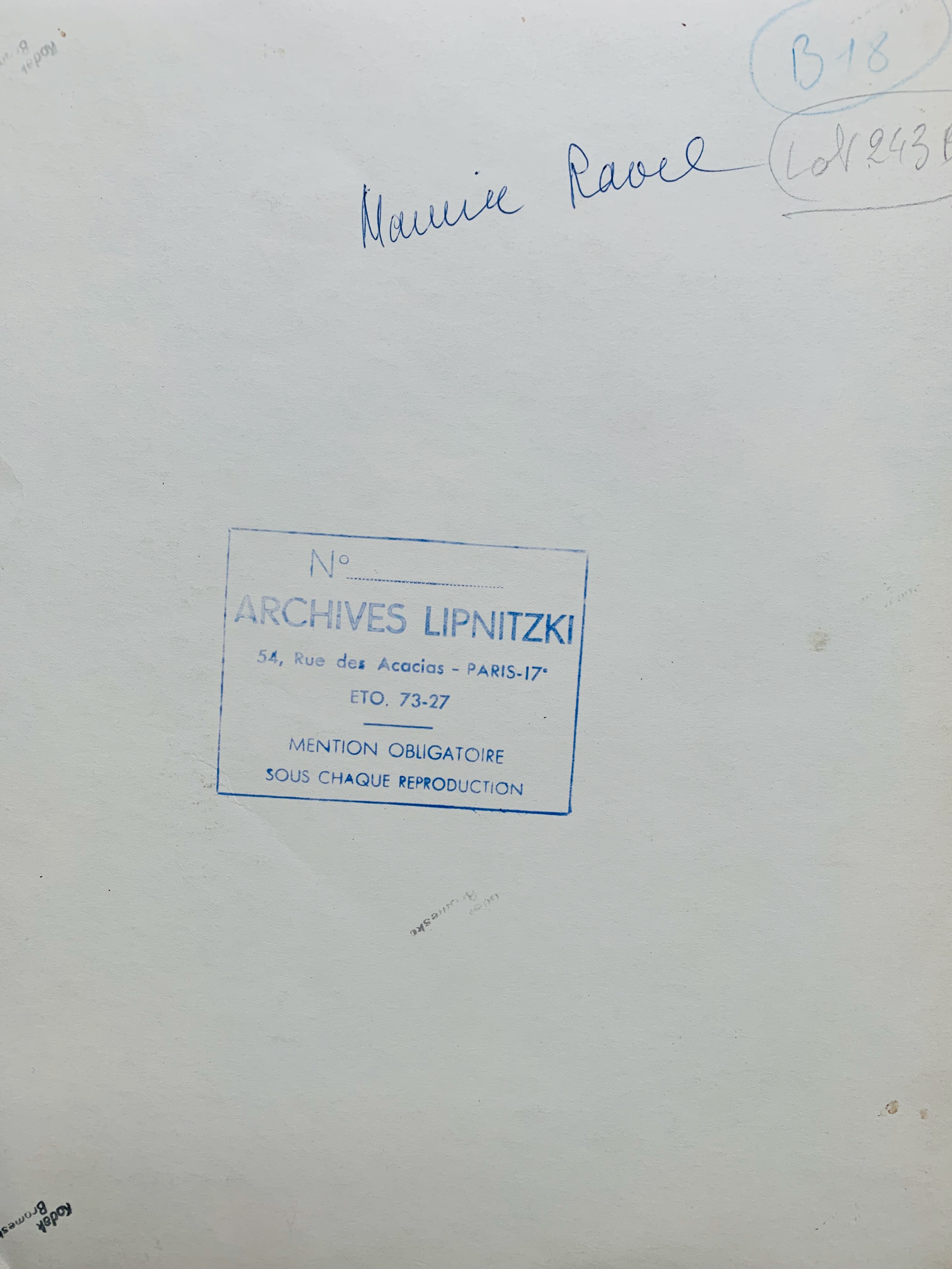 Tampon "Archives Lipnitzki" et annotations manuscrites au verso.
