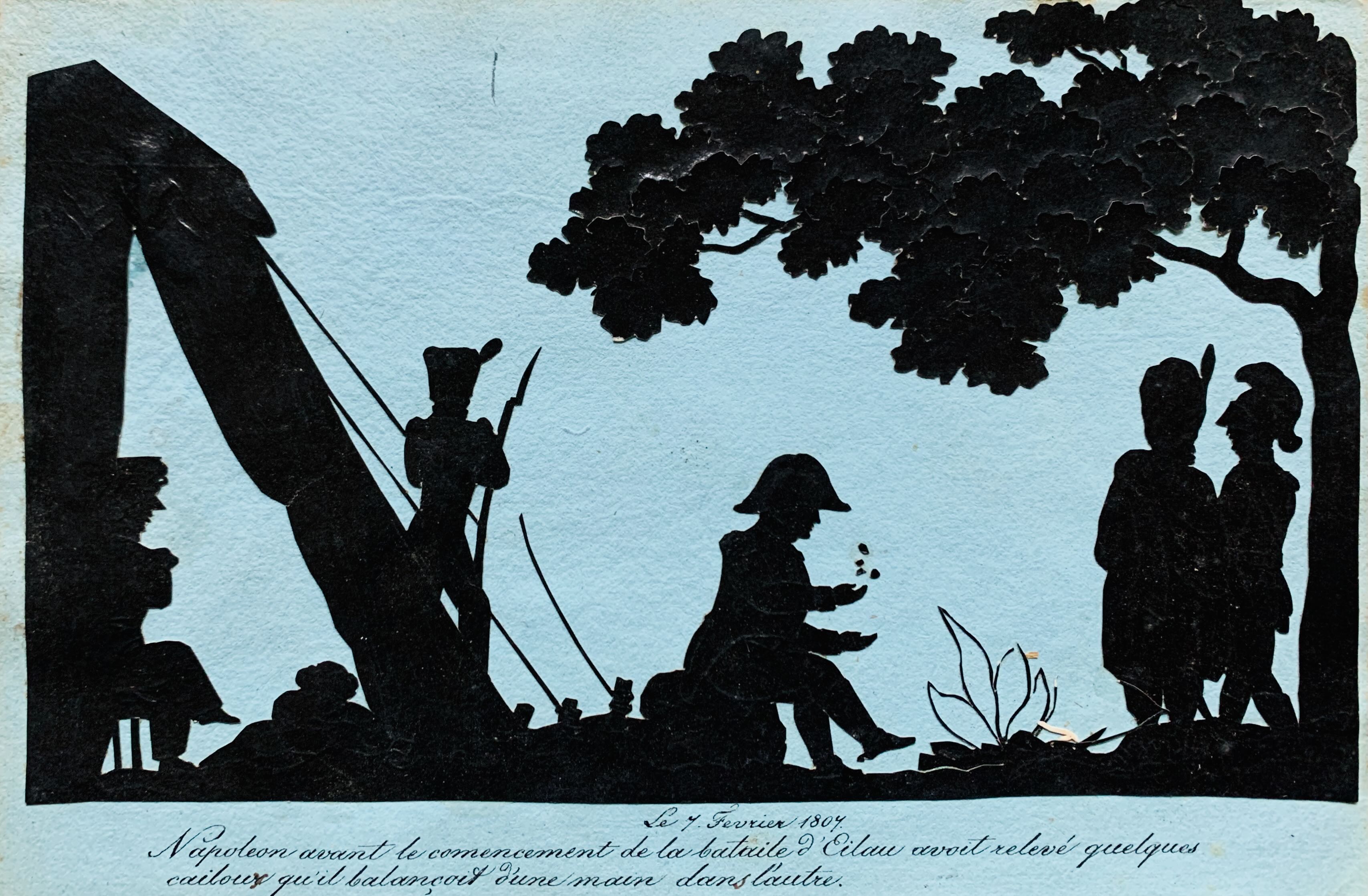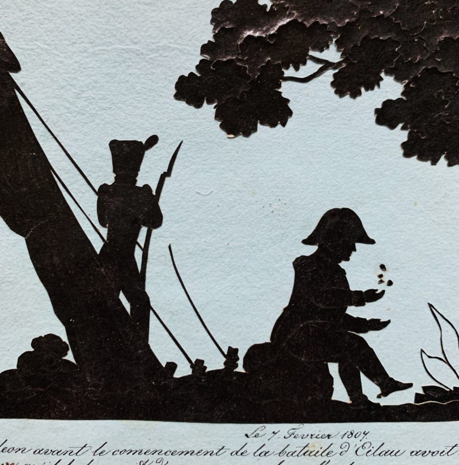 Superbe série de 5 scènes en silhouettes illustrant Napoléon et des épisodes de l’Empire