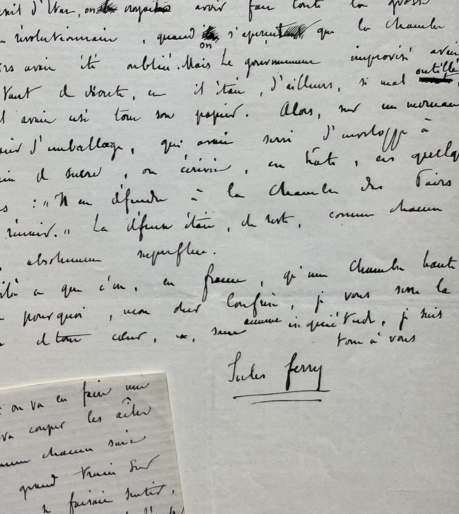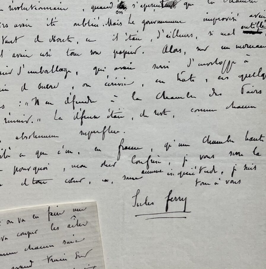 Jules Ferry (Saint-Dié, 1832/1893)Terrible charge de Jules Ferry contre le Sénat (brouillon avec ratures, ajouts et corrections).