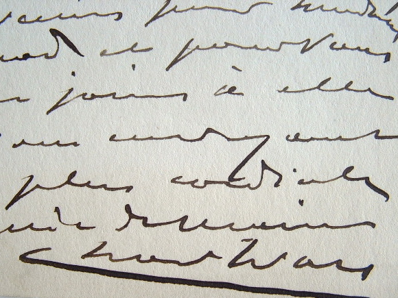 "Mon cher ami, merci mille fois de votre lettre à Claude Phillips. Je l'ai vu. Je puis même dire revu, attendu que nous nous étions déjà rencontrés à Londres. C'est un homme charmant et qui m'a donné des renseignements très utiles. Mon exposition ouvre demain pour la presse. Elle fait très bon effet et j'espère que ce sera un succès. Madame Chartran est venue me retrouver hier. Elle me charge de ses meilleurs souvenirs pour madame Monod et pour vous. Je me joins à elle en vous envoyant ma plus cordiale poignée de main. Chartran". [Théobald Chartran exposa régulièrement à la Royal Academy de Londres, à partir de 1881, où ses portraits étaient très appréciés].