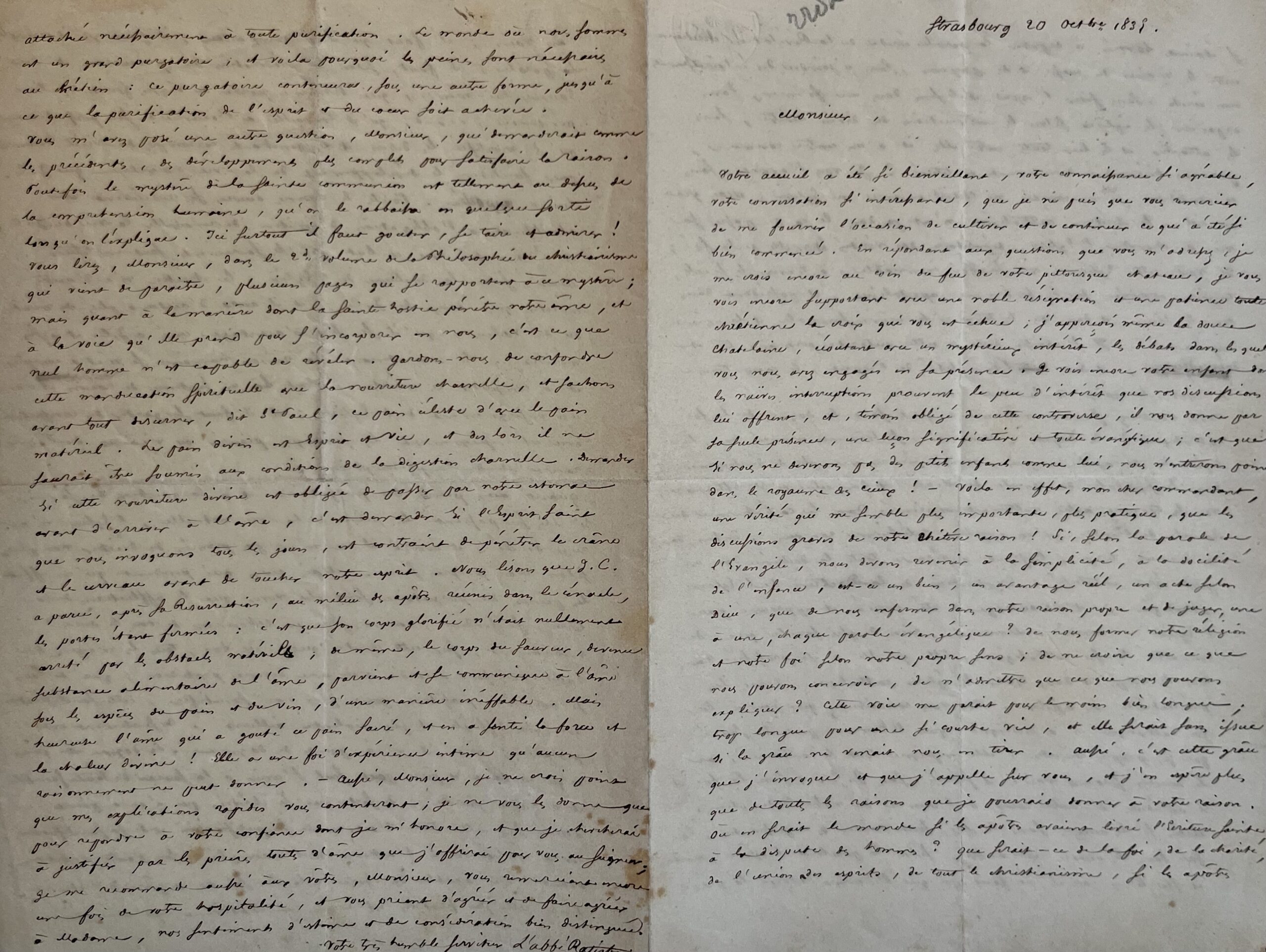 Théodore Ratisbonne, israélite converti au catholicisme, explique la révélation chrétienne dans une très dense lettre