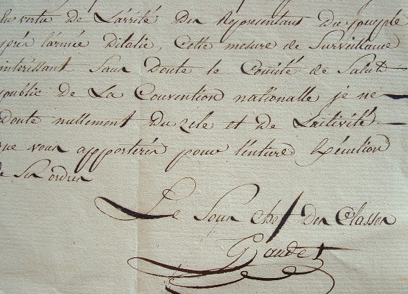 Lettre signée Gaudet, sous-chef des classes, relative à la reconstruction de Port de la Montagne, juste après le siège.