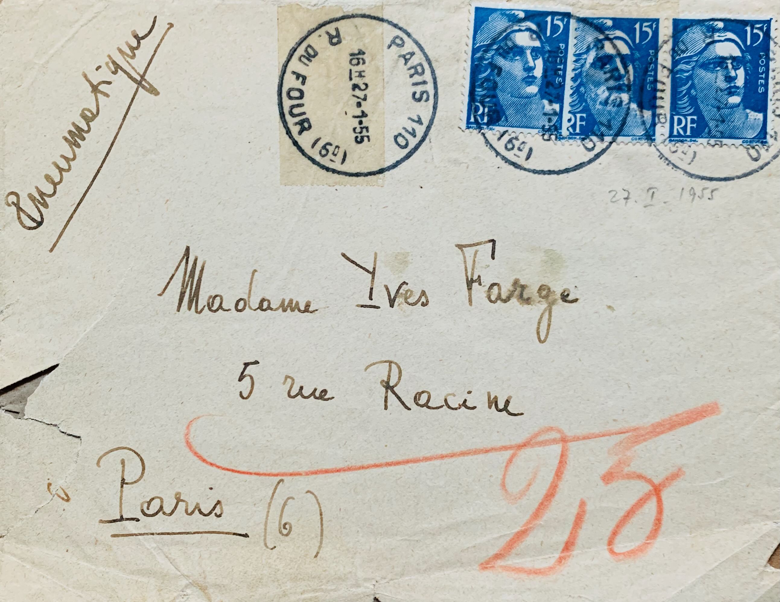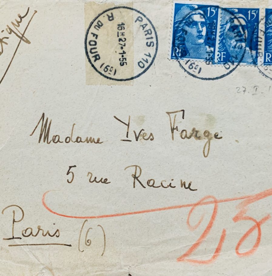 Jean-Paul Sartre (Paris, 1905/1980)Superbe lettre à la veuve de l'ancien résistant et ministre communiste Yves Farges, qui fut président du mouvement Combattants de la paix. Il évoque le travail de sa dernière pièce, Nekrassov et ses projets de voyage au Vietnam et en Chine.