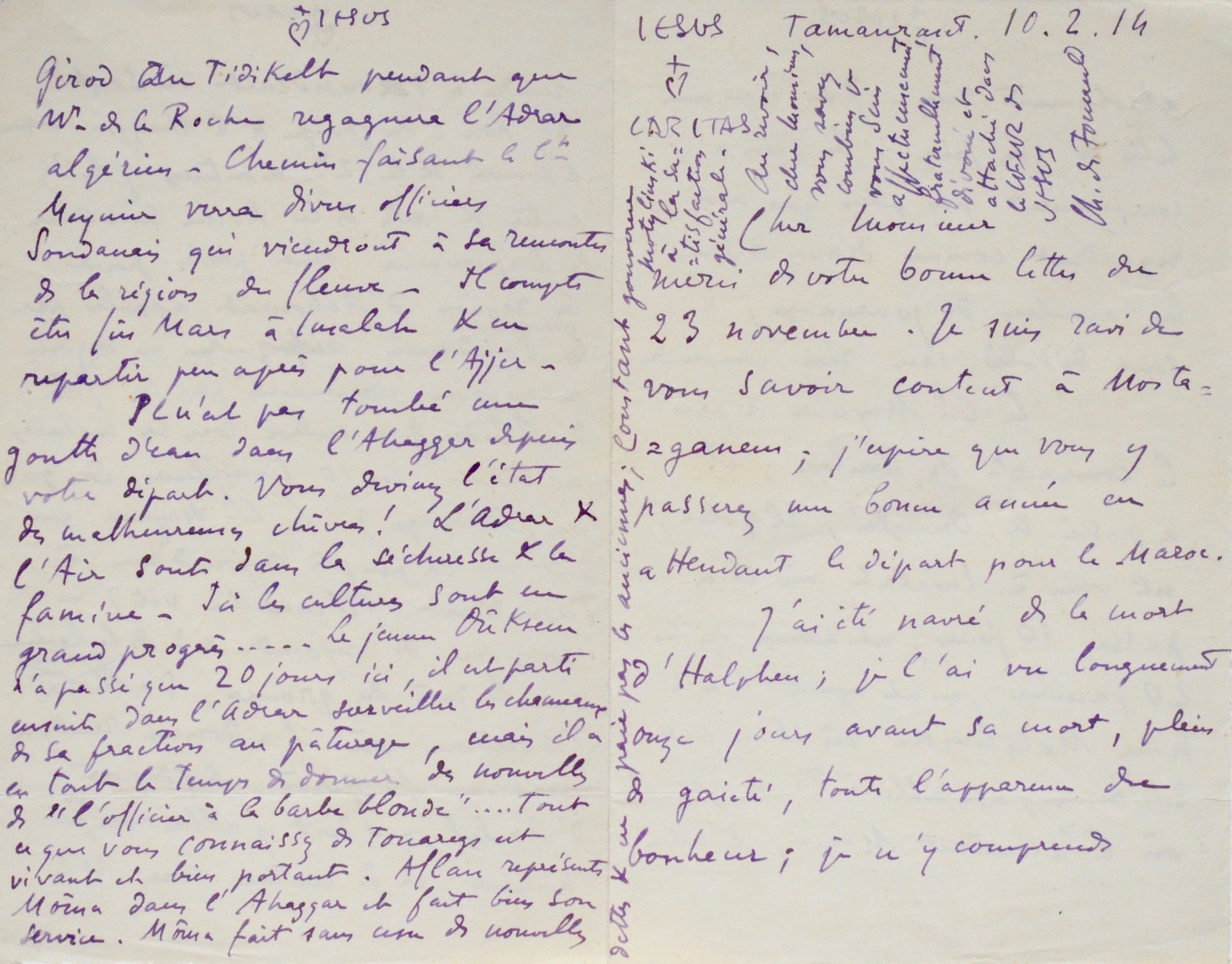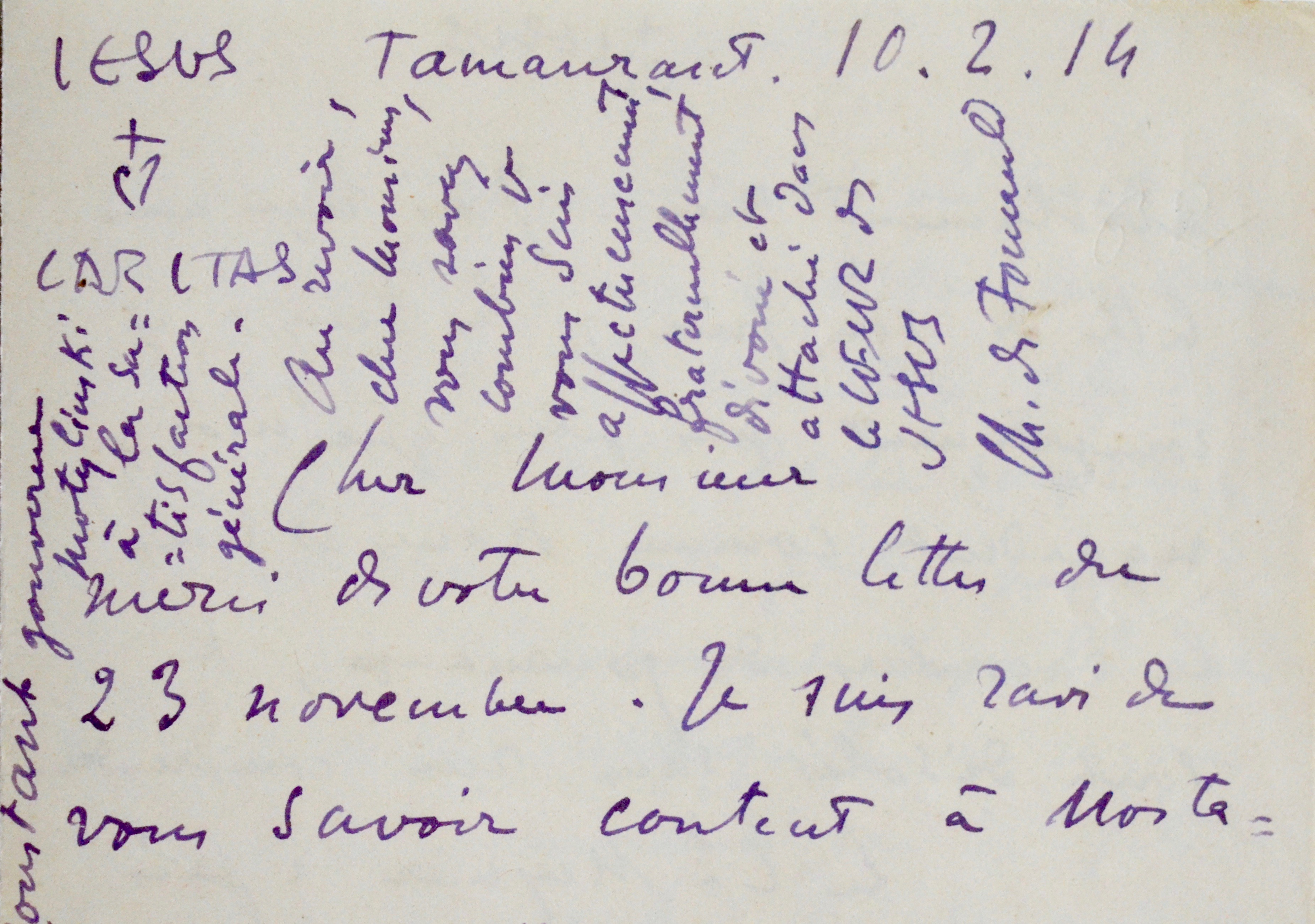 Belle lettre pleine de sollicitude du père Charles de Foucault.