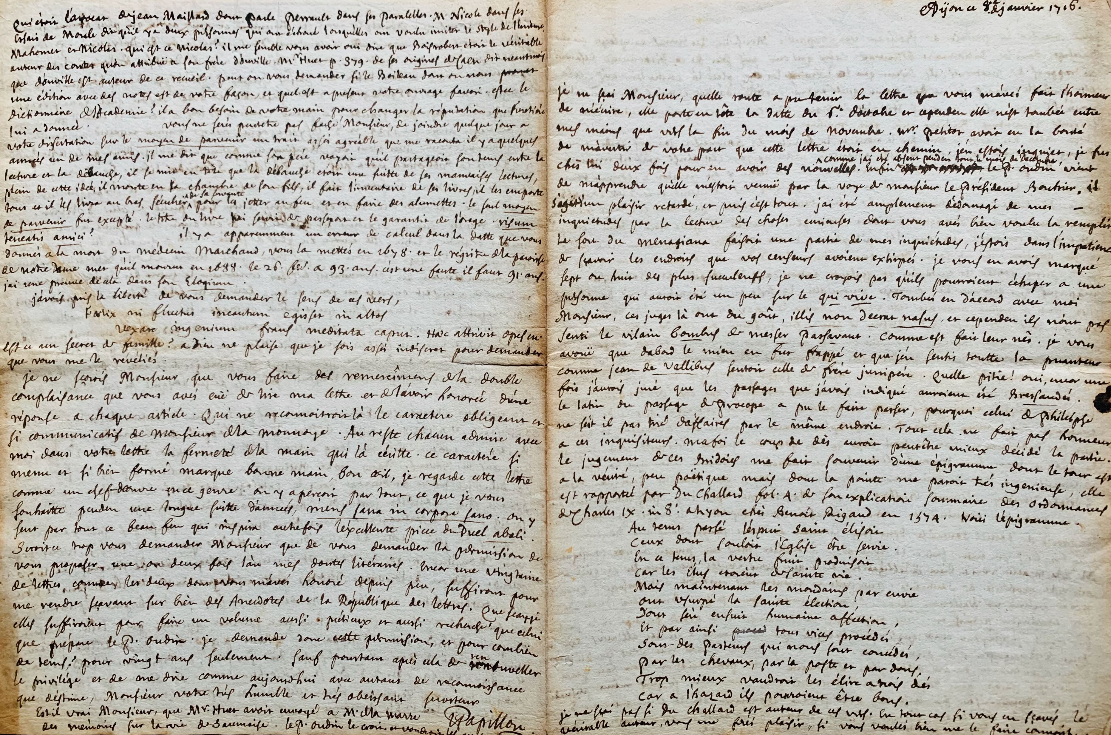 Très longue lettre érudite de Philibert Papillon, historien bourguignon, à son compatriote Bernard de La Monnoye
