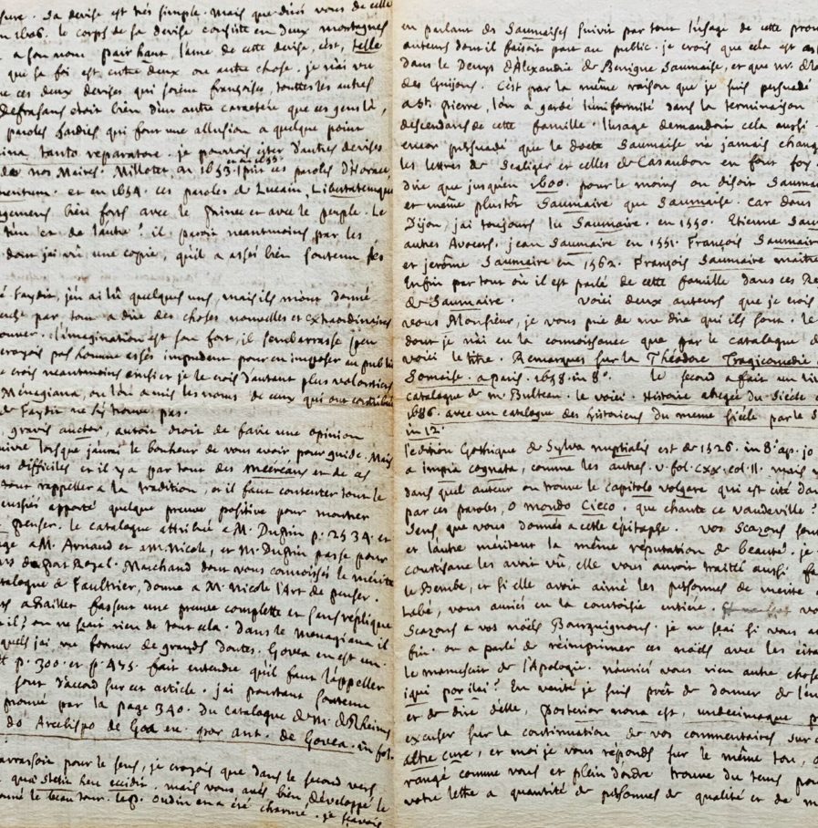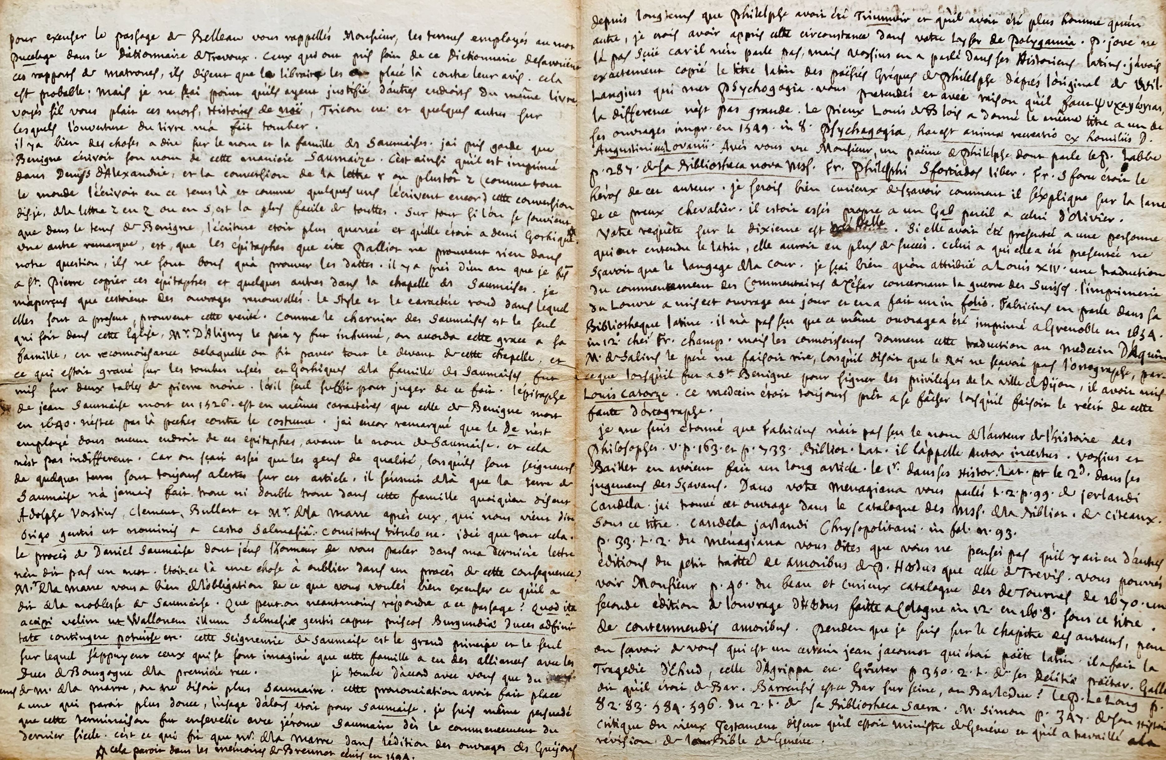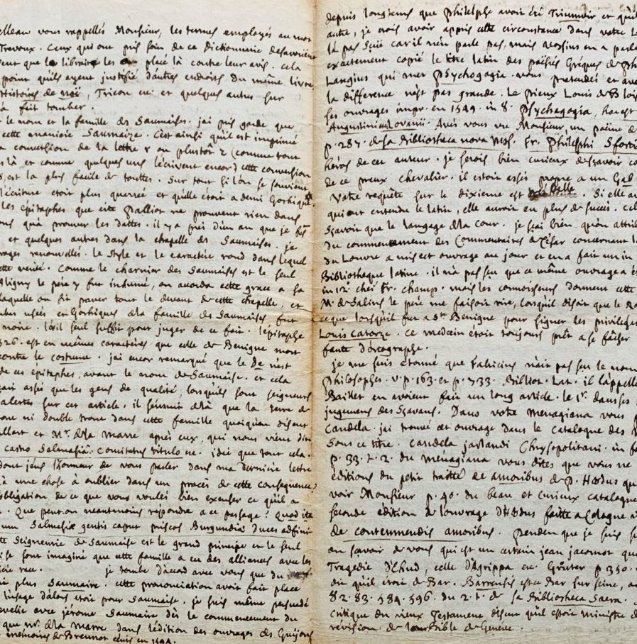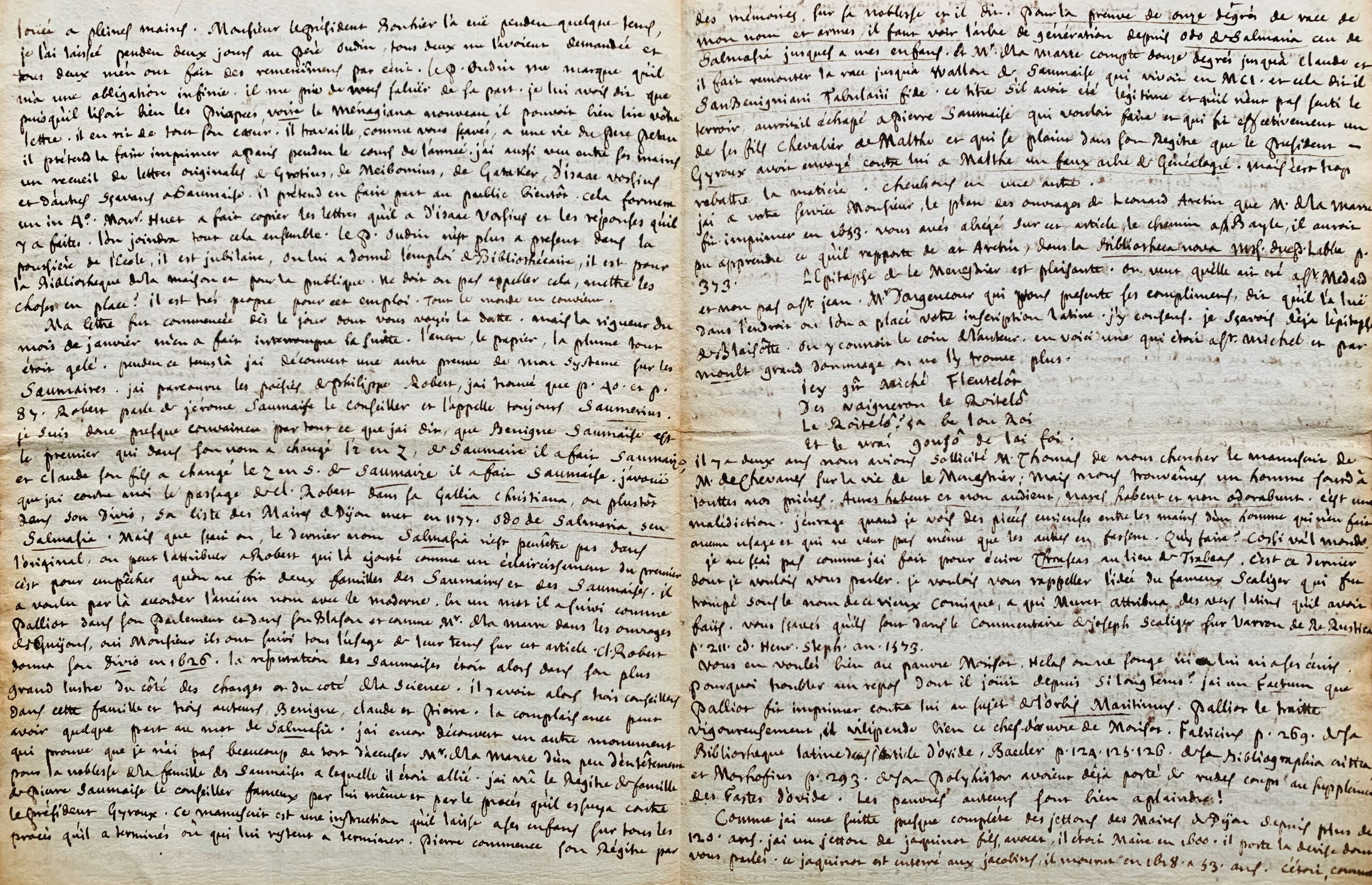 Philibert Papillon (Dijon, 1666/1738)Très longue lettre (8 pp. in-4 d'une écriture dense), très érudite, en grande partie consacrée à la famille Saumaise.