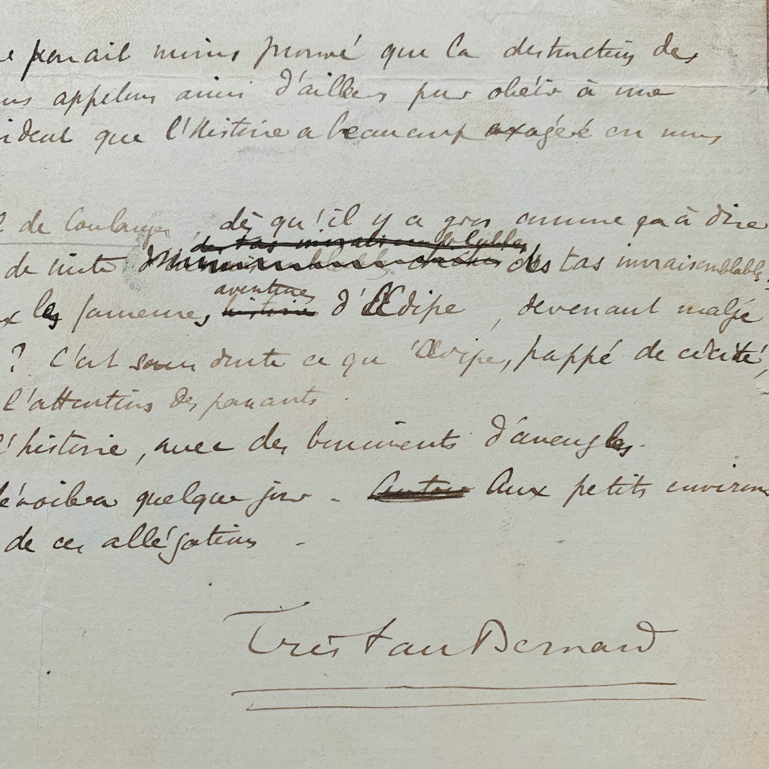 Manuscrit de la réponse de Tristan Bernard à Alphonse Allais au sujet de la Femme de Loth