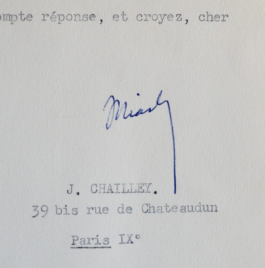 Trois lettres dactylographiées signées du musicologue et compositeur Jacques Chailley, dont deux adressées à Henri Martelli et une à Henri Tomasi.