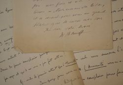 Maurice Bonneff (Gray, 1884/1914)Ces trois lettres de Maurice et Léon Bonneff à Daniel Halévy portent essentiellement sur l'ouvrage que ce dernier, "Agricol Perdiguier. Mémoires d'un compagnon" paru à Moulins en 1914. Dans la première lettre enthousiaste, signée de Maurice seul mais écrite au nom des deux frères, l'auteur remercie son correspondant, Daniel Halévy : « Je suis heureux que Didier, homme du peuple [1914] vous ait intéressé et qu'il vous ait plu. Je n'ai pas encore reçu le Perdiguier dont vous m'annoncez l'envoi. Je n'ai pas besoin de vous dire avec quelle joie mon frère et moi nous le lirons. Nous aimons vos livres, et ce serait pour nous un grand plaisir que de causer avec vous. » Les deux frères vont donc chroniquer l'ouvrage dans L'Humanité. La dernière lettre nous apprend que les deux frères ont reçu l'ouvrage d'Halévy, « un livre profond et charmant, nous sommes contents de l'avoir ». Une lettre est écrite par Maurice et deux par Léon.
