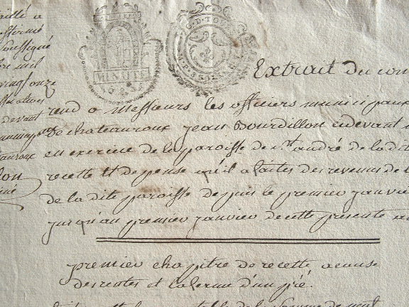 «Extrait du compte que rend à messieurs les officiers municipaux de la ville de Châteauroux, Jean Bourdillon, ci-devant marguillier en exercice de la paroisse St-André de ladite ville, de la recette et dépense qu'il a faites des revenus de la fabrique de ladite paroisse [...]», du 1er janvier 1789 au 1er janvier 1791. La pièce est signée par Bourdillon.