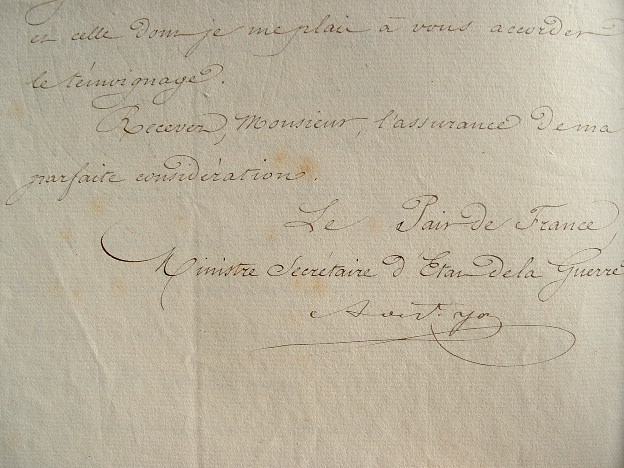 Lettre du ministre de la Guerre, Moline de Saint-Yon, annonçant à son correspondant, Etienne Charles Cetto, inspecteur des forêts à Epinal, qu'il vient d'être nommé chef du service forestier en Algérie. Il donne des indications sur son traitement, son embarcation, etc. Le second document est la copie de la lettre de Moline de Saint-Yon à "monsieur le maréchal" [vraisemblablement le maréchal Bugeaud, gouverneur général de l'Algérie], concernant cette même nomination.