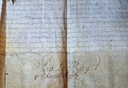 Etat : importante mouillure, avec manques dans la partie supérieure du document.