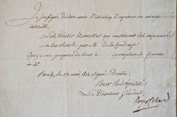 Une autorisation d’imprimer un livre faite à la Direction de la Librairie en 1814.