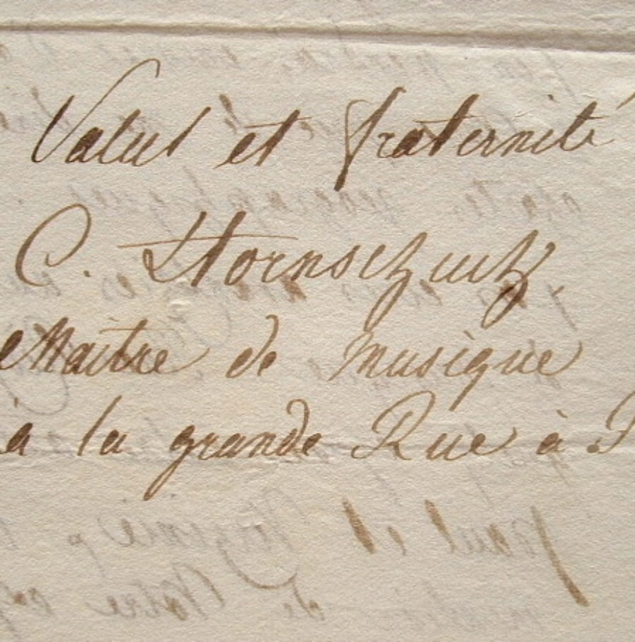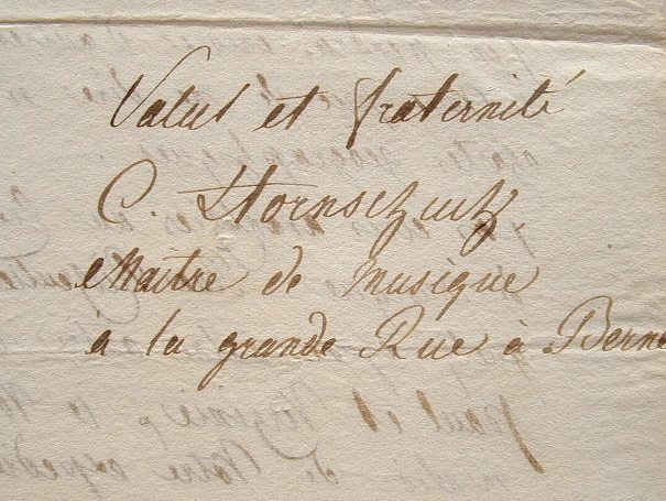 Lettre de C. Hornschuch, maître de musique à Berne, dans laquelle il passe commande d'ouvrages, auprès d'un libraire parisien.