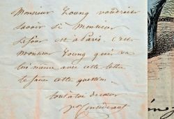 Victor Considérant souhaite savoir si M. Lefour est à Paris. «C'est monsieur Young qui va lui-même avec cette lettre te faire cette question». Il ajoute en post-scriptum : «Envoie nous tes listes et envoie nous une annonce de ton journal. j'ai réservé, dans mon traité, l'immunité pour les annonces de tes publications».