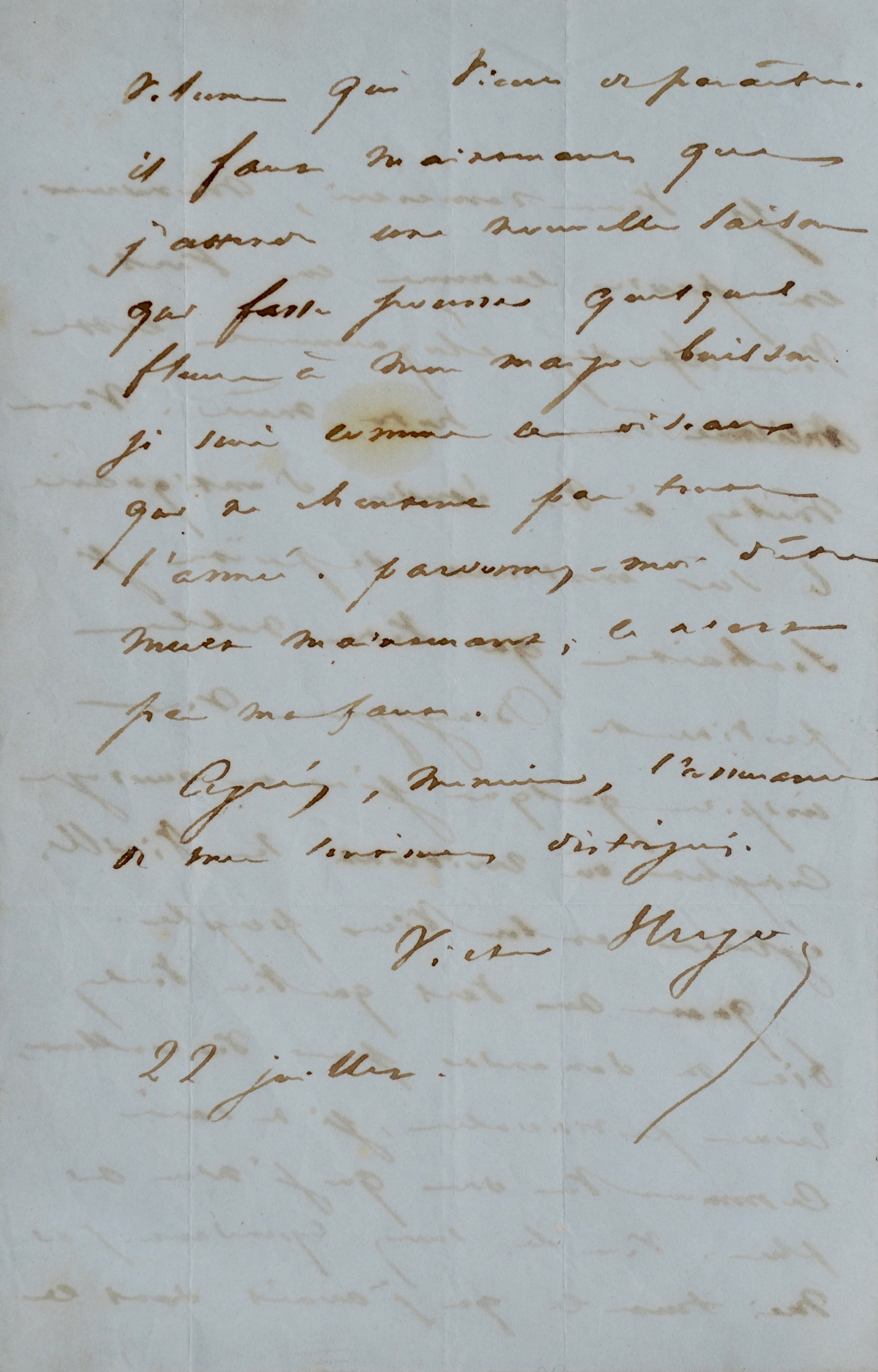 Victor Hugo (Besançon, 1802/1885)Belle et élégante lettre, en réponse aux vers demandés par le poète bourguignon Joseph Bard.