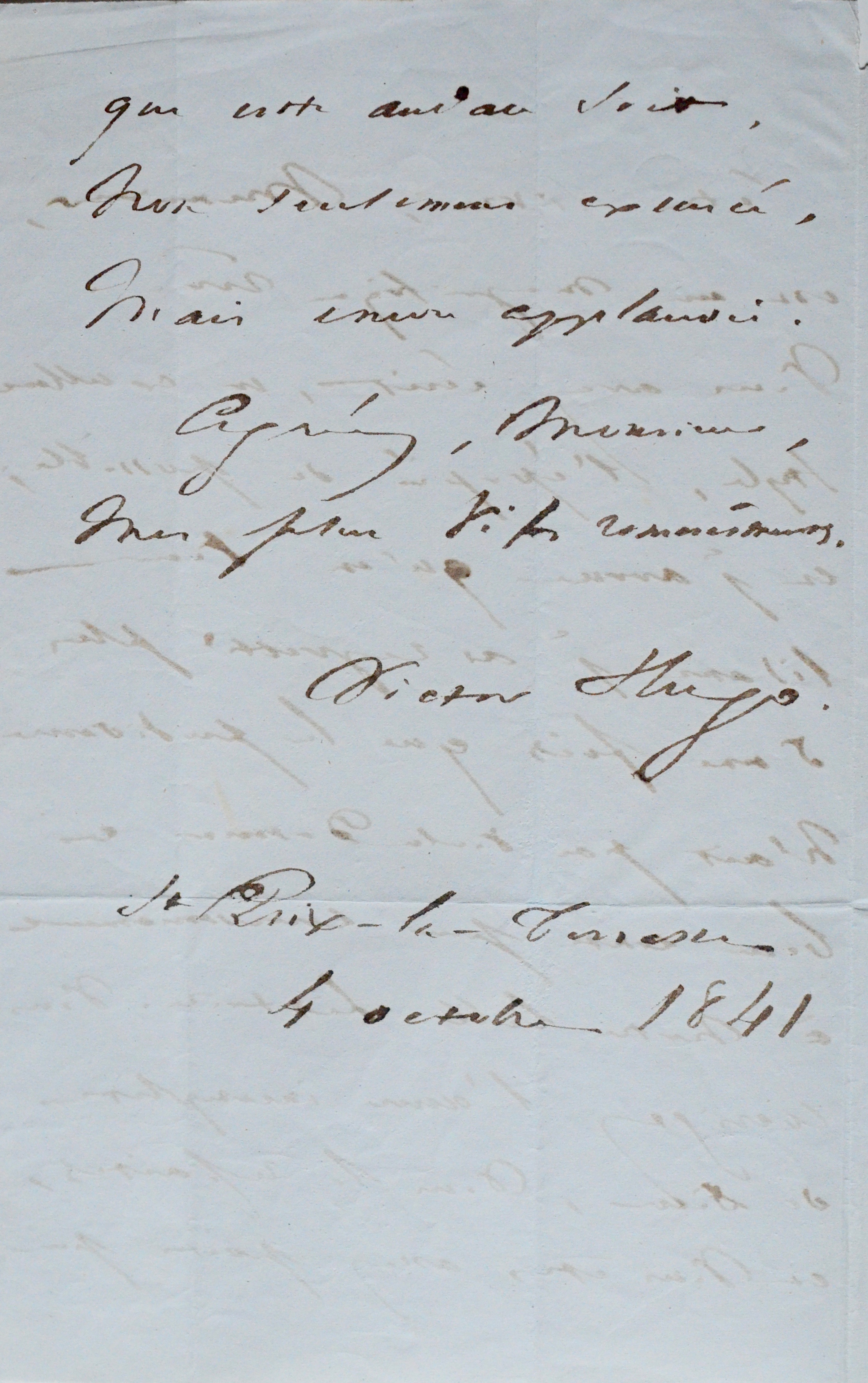 Très belle lettre de Victor Hugo, évoquant Napoléon, adressée à Louis-Napoléon Geoffroy-Chateau, au sujet de son ouvrage Napoléon et la conquête du monde.