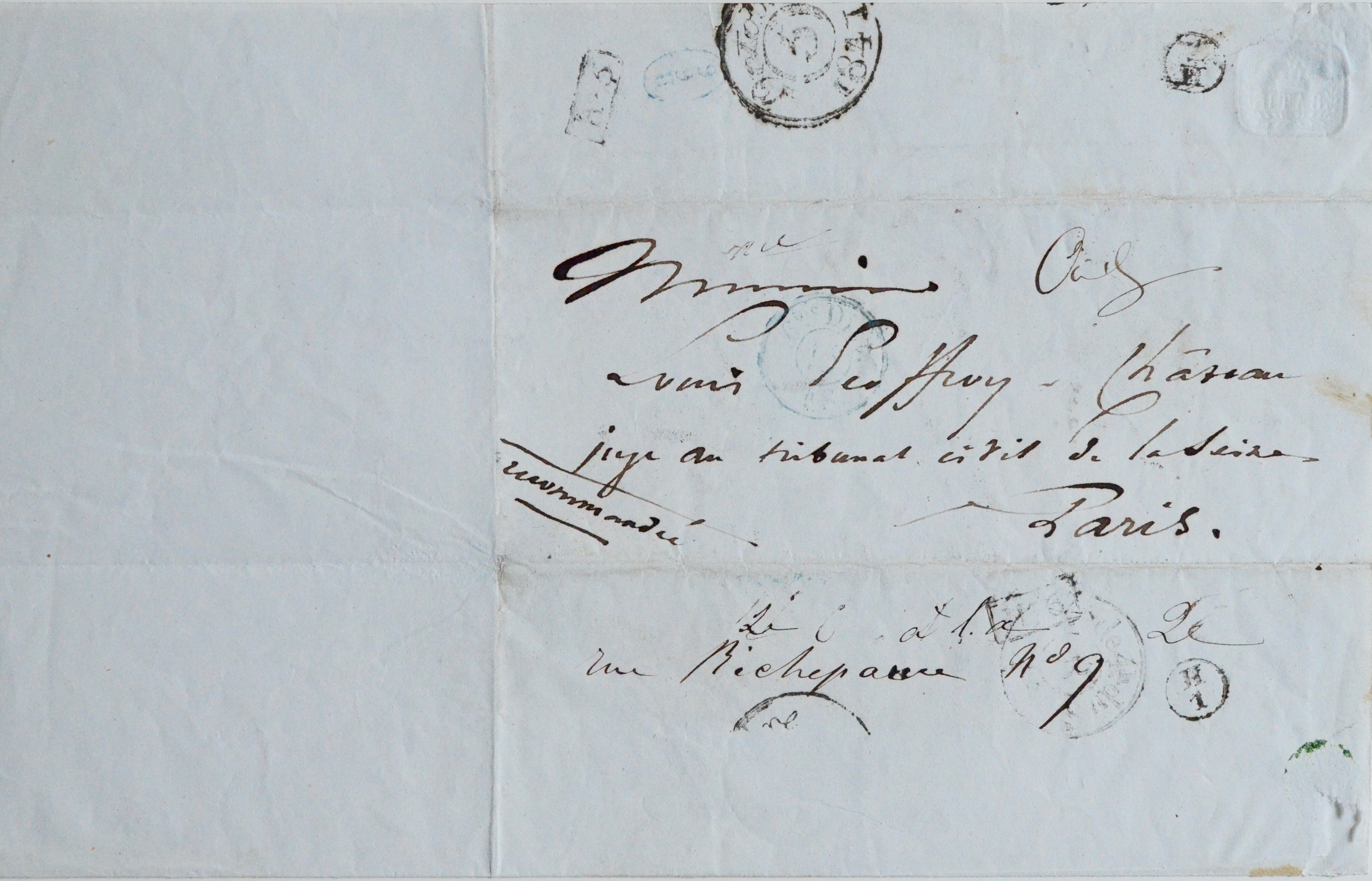 Destinataire : Louis-Napoléon Geoffroy-Chateau (1803-1858), alors au juge au tribunal civil de la Seine