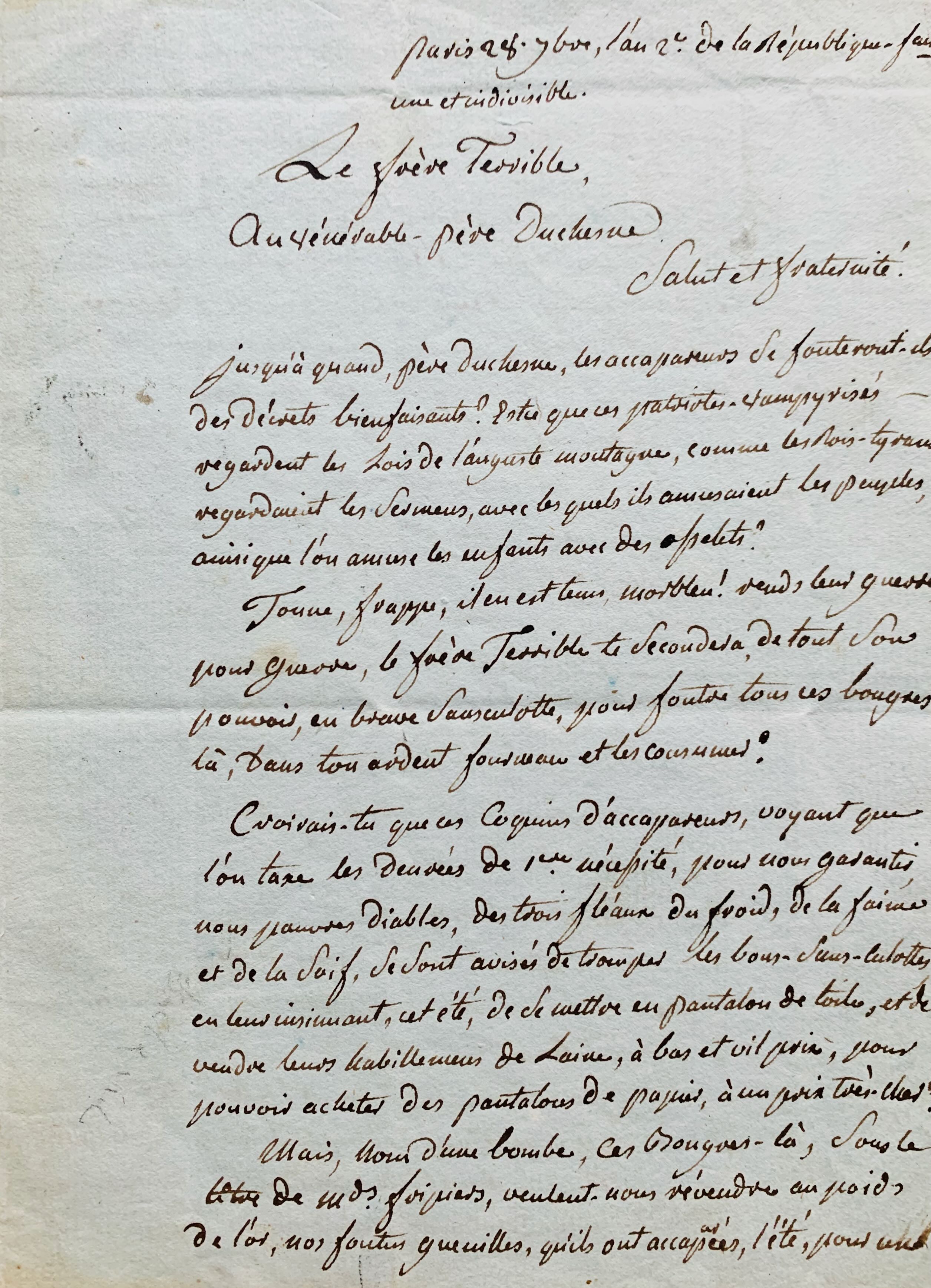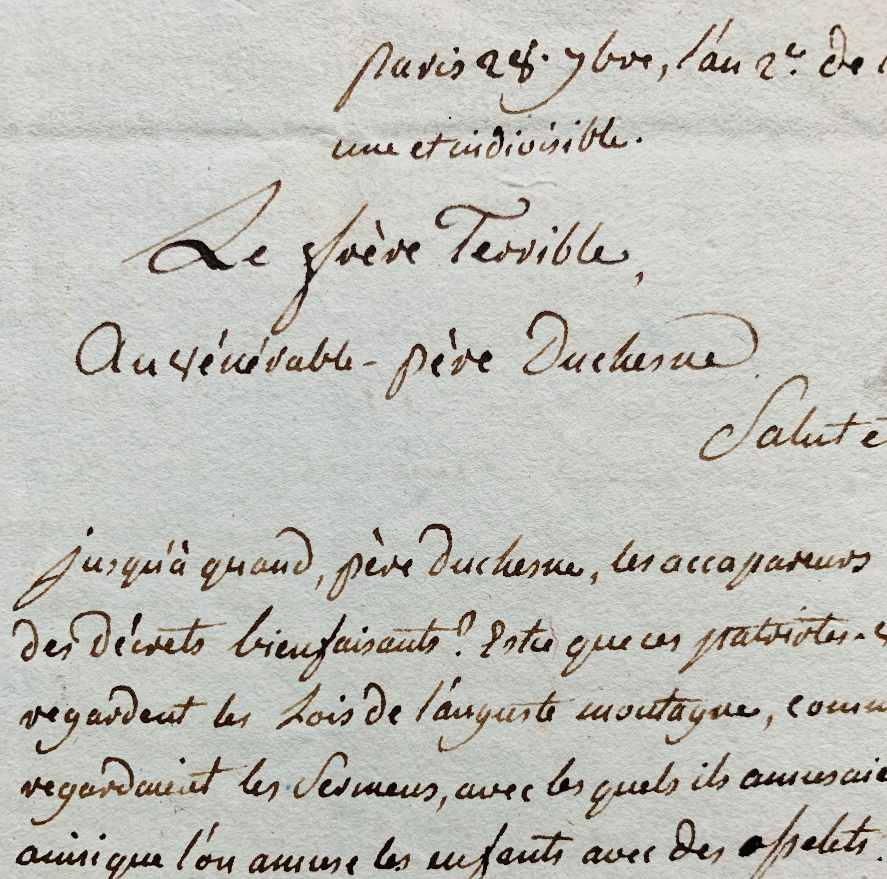 "Le frère Terrible au vénérable père Duchesne, salut et fraternité,