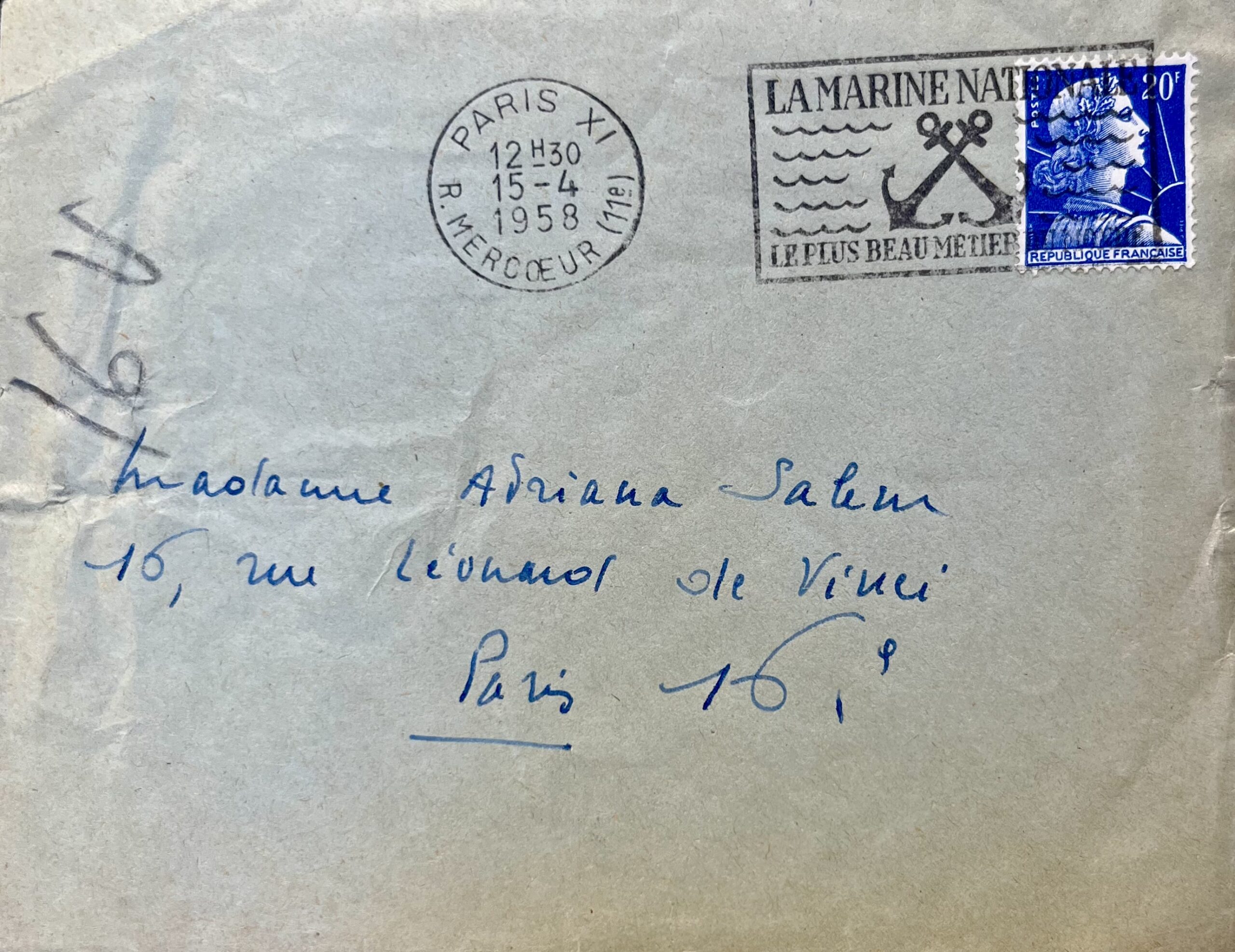 Destinataire : à la traductrice Adriana Salem, 16 rue Léonard de Vinci à Paris