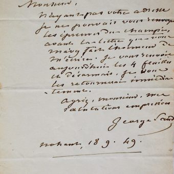 Lettre inédite de George Sand à son pépiniériste Louis-Claude Noisette, au sujet de plantations pour Nohant