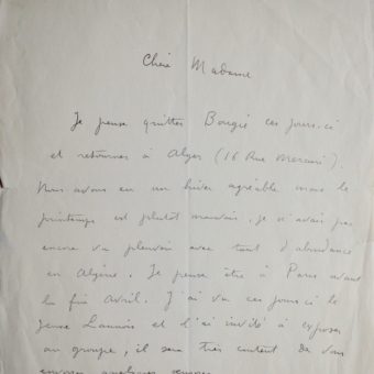 Albert Marquet retourne à Alger et écrit Mme Alfred Natanson
